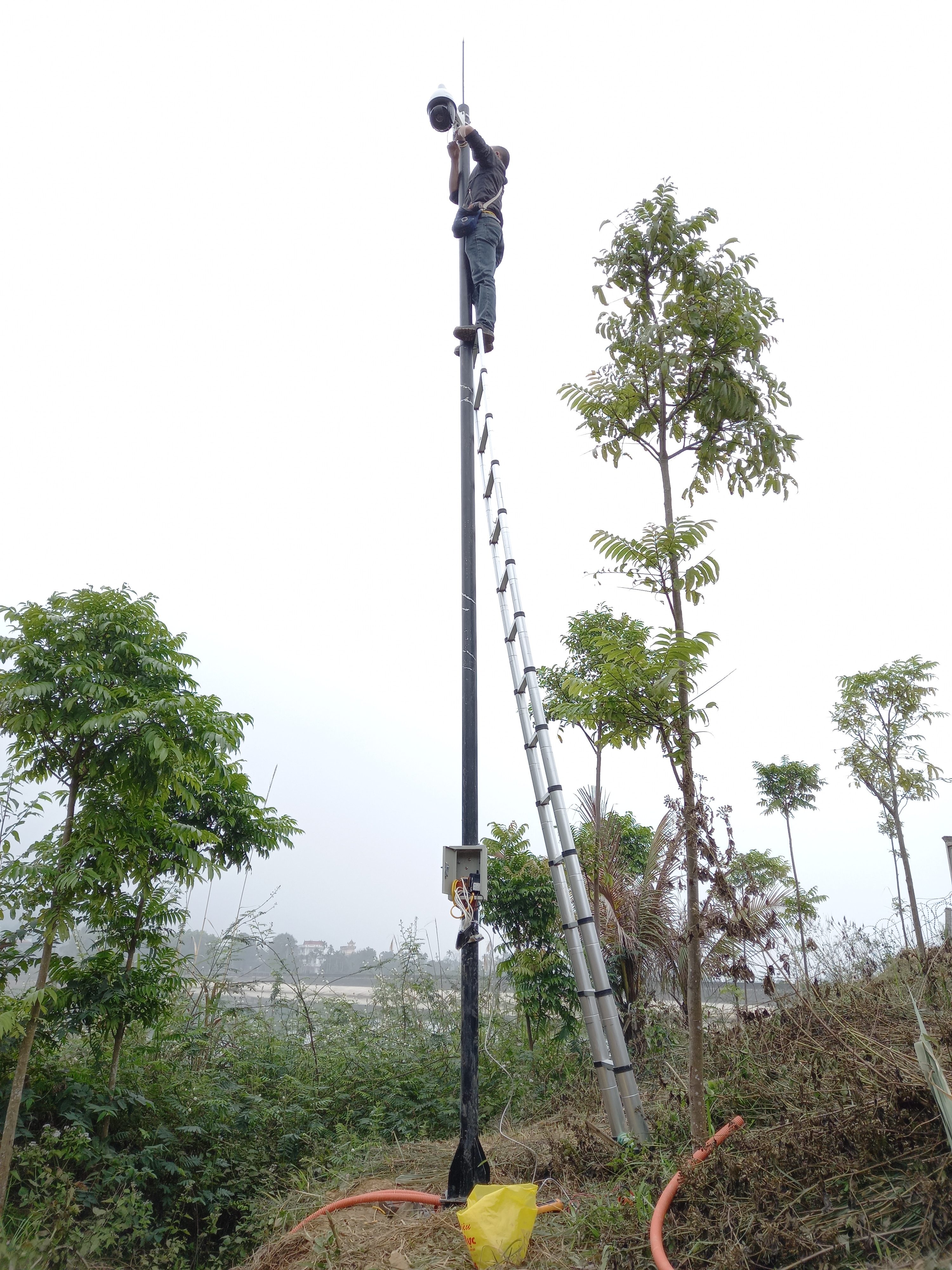 HÌNH ẢNH THI CÔNG LẮP ĐẶT CAMERA QUAN SÁT NHÀ VƯỜN TẠI HỒ CỐ ĐỤNG